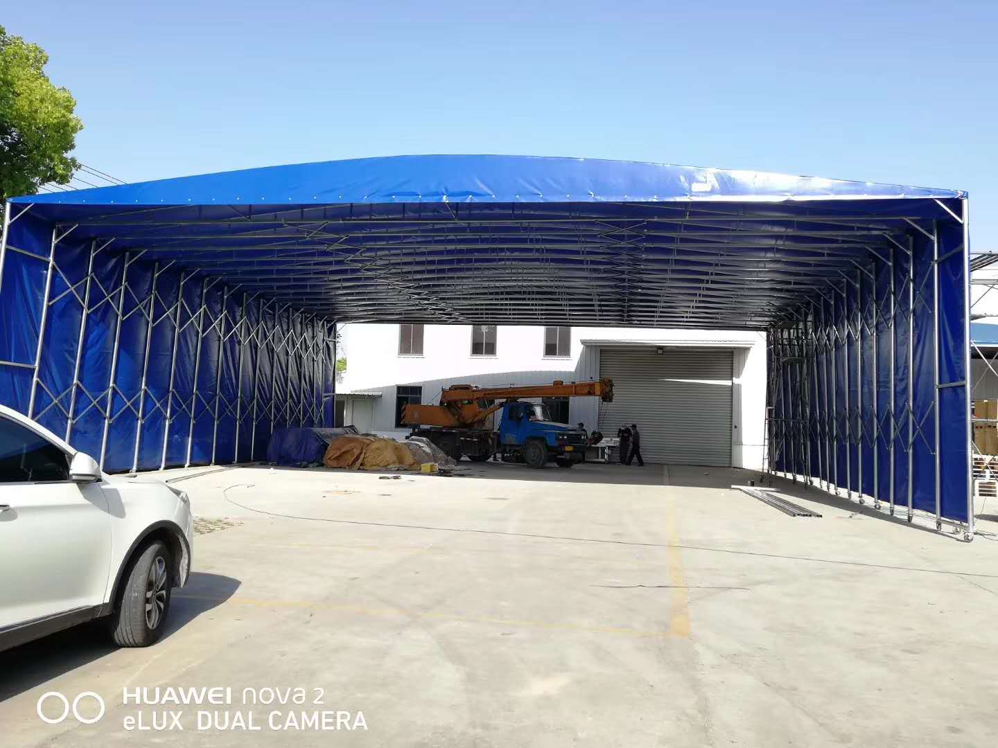 南京公司工厂下雨天货物没地方堆放怎么办电动伸缩可折叠收缩活动推拉篷可以帮你解决问题