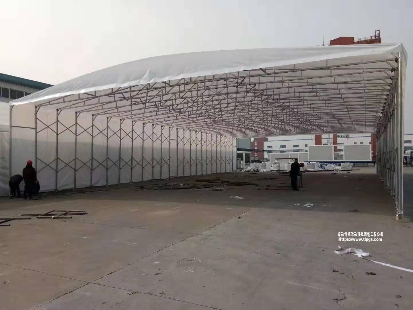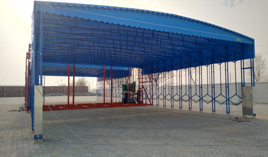 南京附近电动伸缩活动推拉棚厂家制作加工临时可移动仓储仓库雨篷