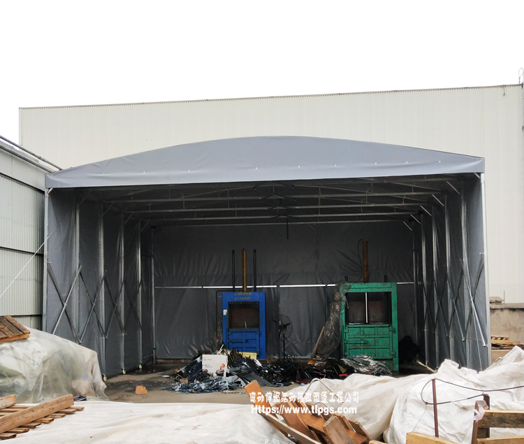 公司工厂下雨天货物没地方堆放怎么办,电动伸缩可折叠收缩活动推拉篷可以帮你解决问题,在下雨天货物没有合
