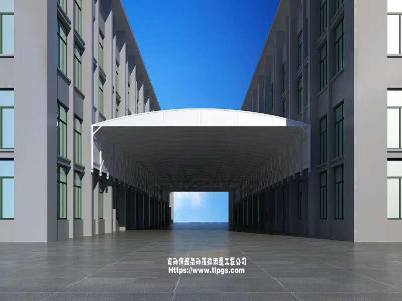电动伸缩架空轨道推拉雨棚电动伸缩活动推拉雨棚,常用于过道之间,覆盖面积大,容易收缩,智能遥控控制,一