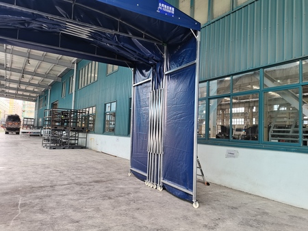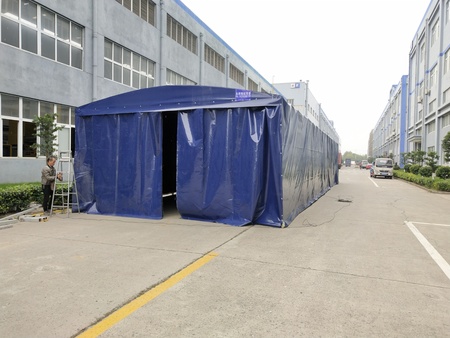本公司有十五年移动雨棚制作经验,专业制作销售安装移动雨棚,电动轨道移动顶棚,活动雨棚,推拉棚等,凡是我公司生产制作的雨棚一年免费维修,终生保修。