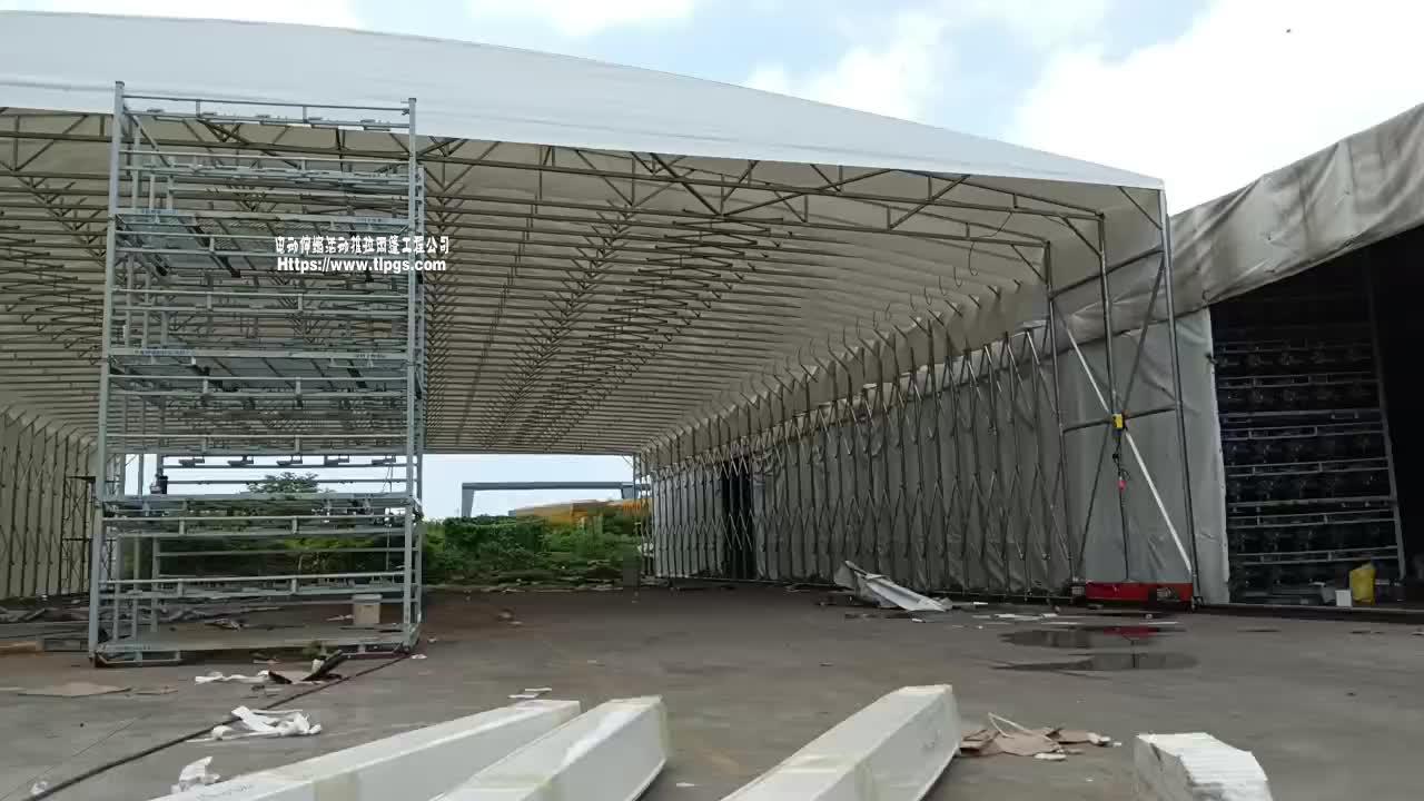 通常用于室外场地或工地上的物品保护和储存。这种雨棚通常由钢架和防水材料组成,可以在需要时快速安装和拆除。