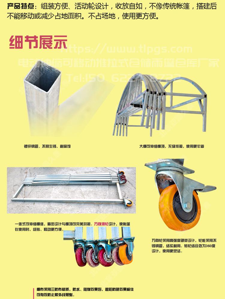 长两侧的围布:从第一个立柱上部分蝴蝶螺丝固定,边固定侧面,现在也可以固定顶部下垂布料,方式是里面是围布,外面是顶部,这样下雨了,雨水会随着顶部布料,流向侧面围布,顺着到地面,注:不可顶部下垂布料在里面,围布在外面。